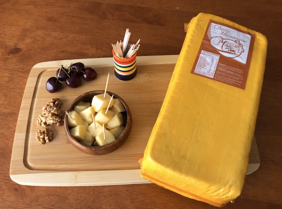 Queso sin corteza, de un sabor suave y semi mantecoso, color amarillo suave, textura de masa con ojos irregulares y masa flexible.
